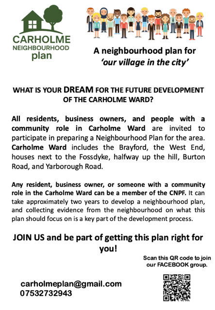 All residents, business owners, and people with a community role in Carholme Ward are invited to participate in preparing a Neighbourhood Plan for the area. Carholme Ward includes the Brayford, the West End, houses next to the Fossdyke, halfway up the hill, Burton Road, and Yarborough Road.