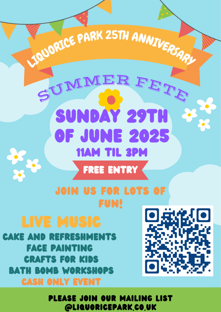 Open Day Reminder June 12, 2025 by gardener Leave a Comment Sunday 29th June 11:00 to 15;00 It’s approaching fast! Our Summer Fete, celebrating 25 years of our lovely community park.